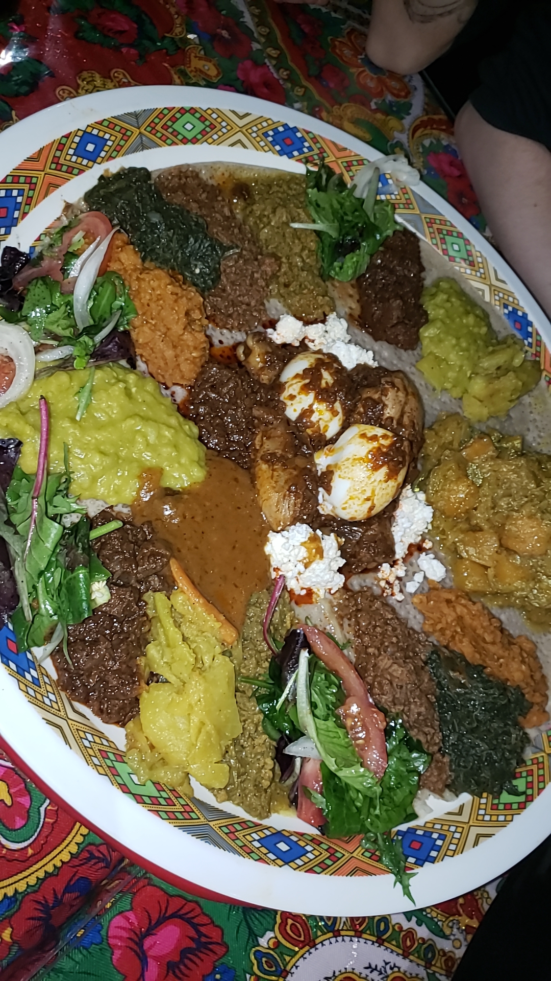 Posté le 06/12/2024 à 07:05"Une assiette grandissime... Le bonheur dans l'assiette. Nous nous sommes régalés. Belle découverte de la cuisine Éthiopienne."